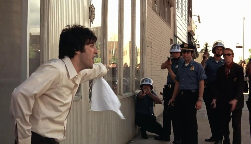 Pacino has said the most memorable moment in the movie involves the delivery boy (Lionel Pina) who brings pizza to the robbers and their hostages. He’s been watching the drama unfold on live TV, and when he’s applauded by the crowd, he does a little skip and jump and says, “I’m a star!” Television turns the moment into what, at that time, was a fairly new event for live broadcasting. Sonny expands in the TV lights, strutting back and forth in front of the bank and unwisely exposing himself to rooftops lined with snipers.